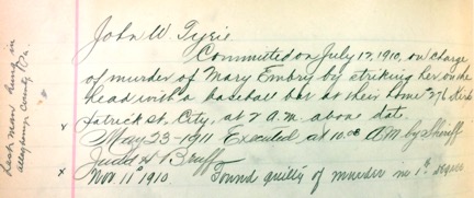 Murder Docket entry for John Tyrie, courtesy of Edward Urban
