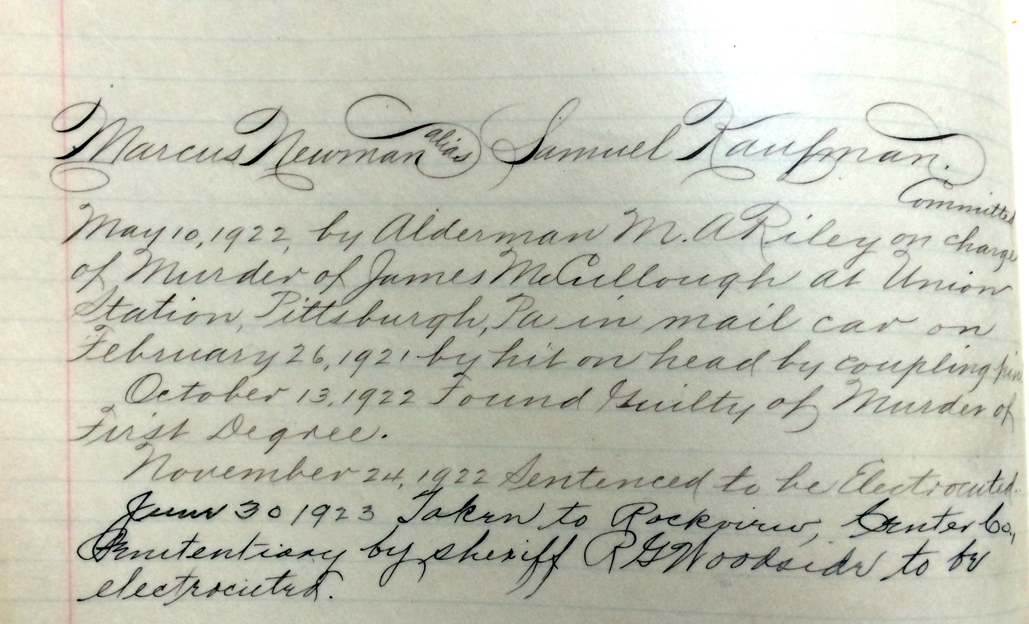 Previous Image Next Image image001 From the Allegheny County Jail’s Murder Book, courtesy of Ed Urban